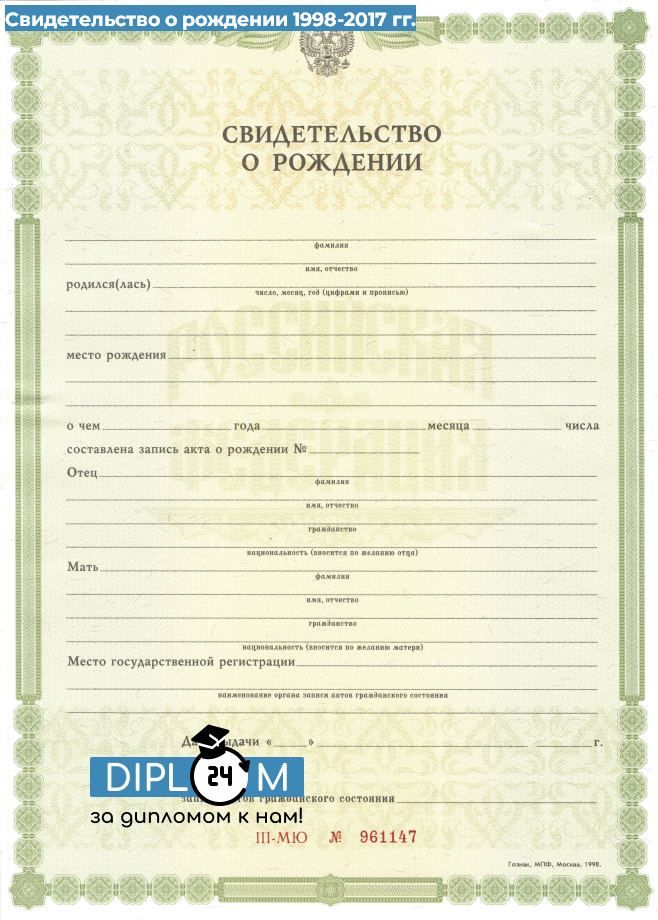 Свидетельство о рождении 1998-2017 гг.
