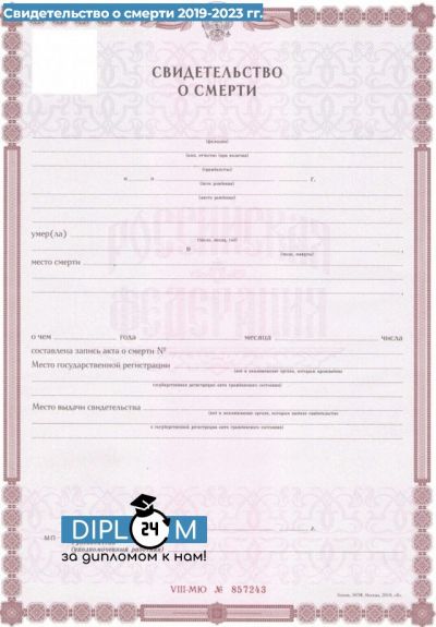 - Комплектация: заполненный бланк свидетельства о смерти с печатями и подписями