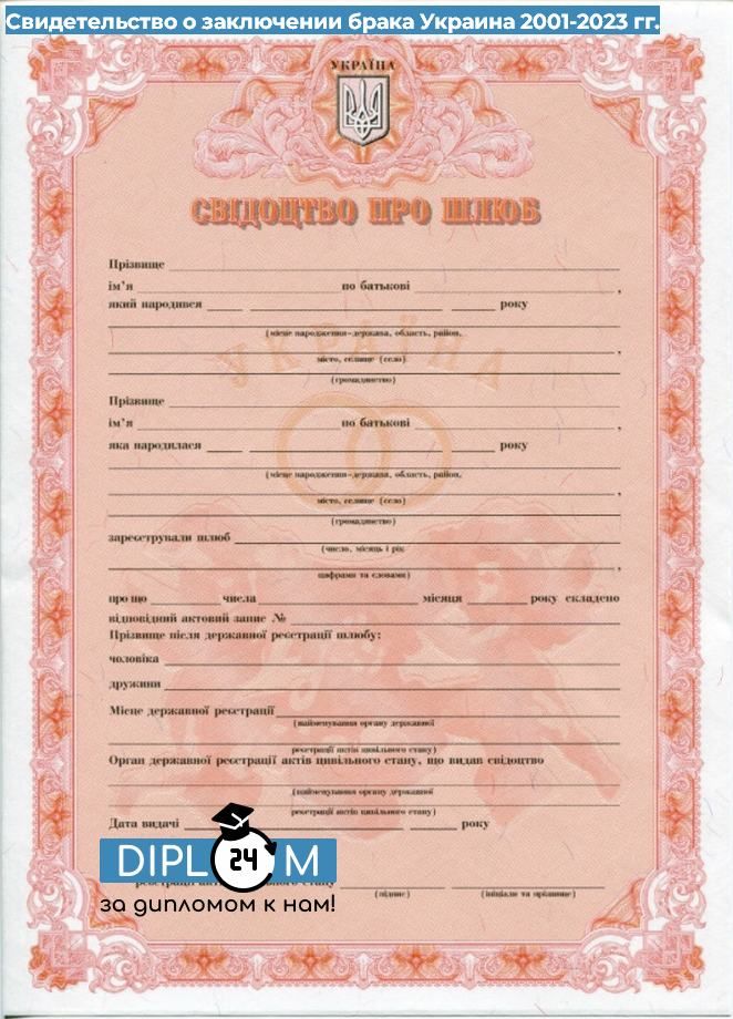 Свидетельство о заключении брака Украина 2001-2023 гг.