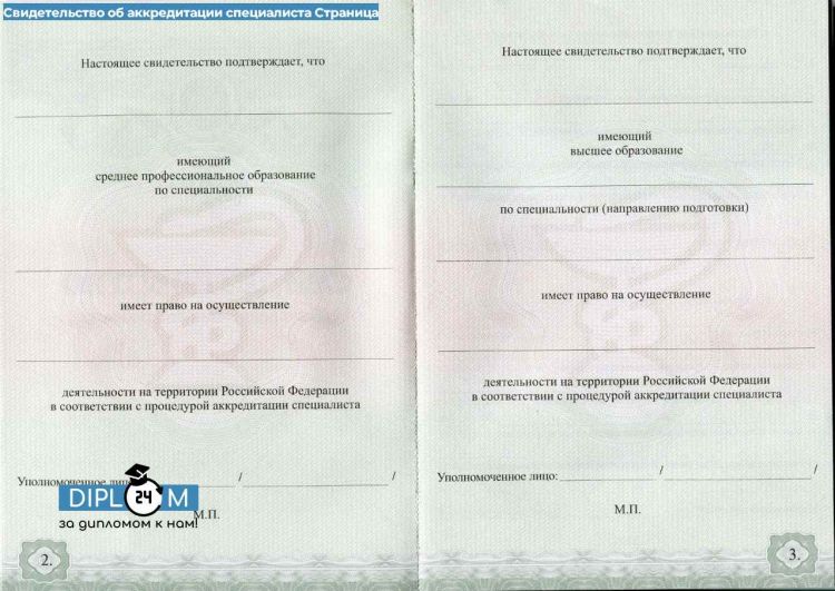 - Комплектация: Корочка, титульный бланк и приложение к свидетельство об аккредитации специалиста
